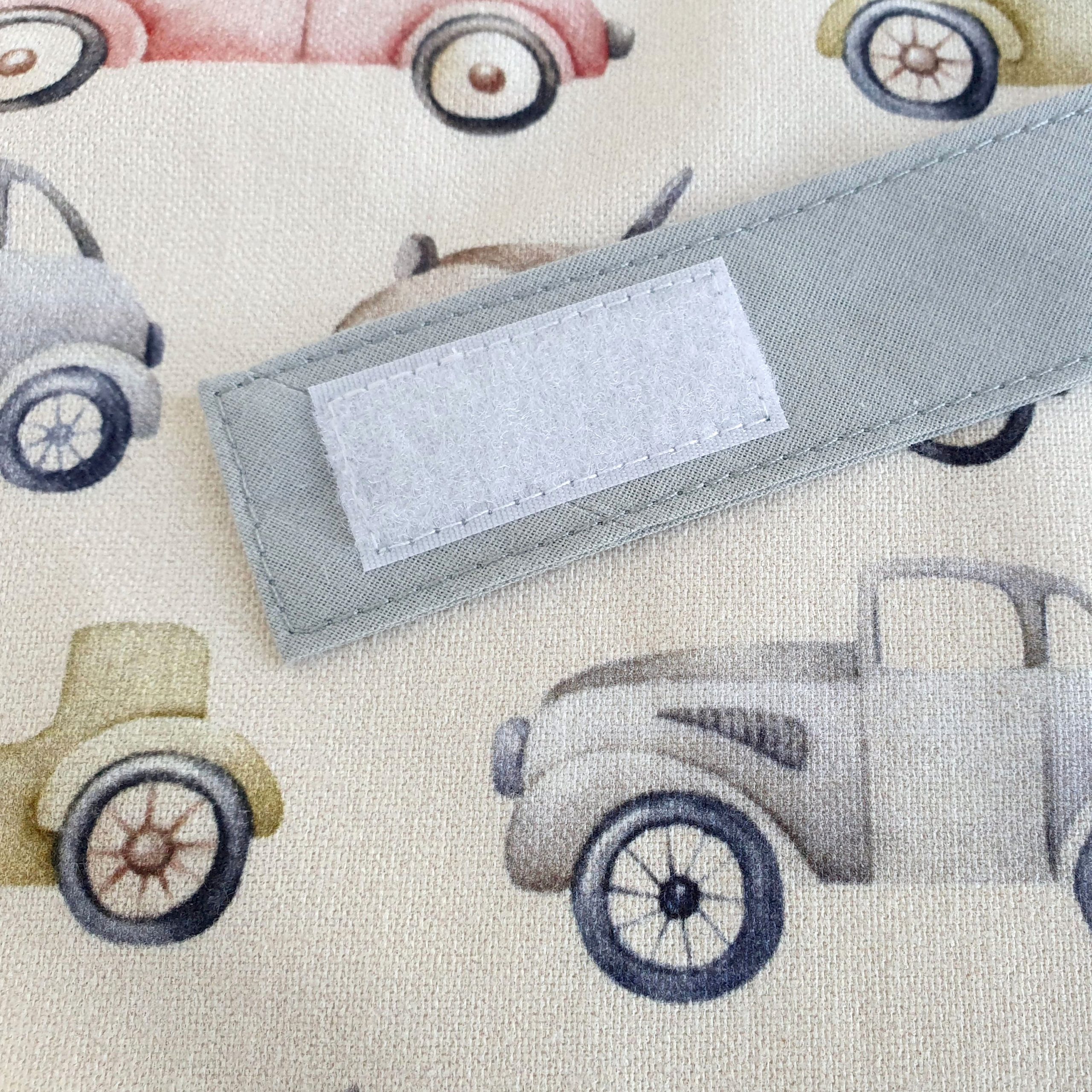 100% cotton with a water-resistant finish, OEKO TEX certified. The fabric is very soft to the touch. Easy to clean with a wet cloth or in the washing machine at max. 30ºC.