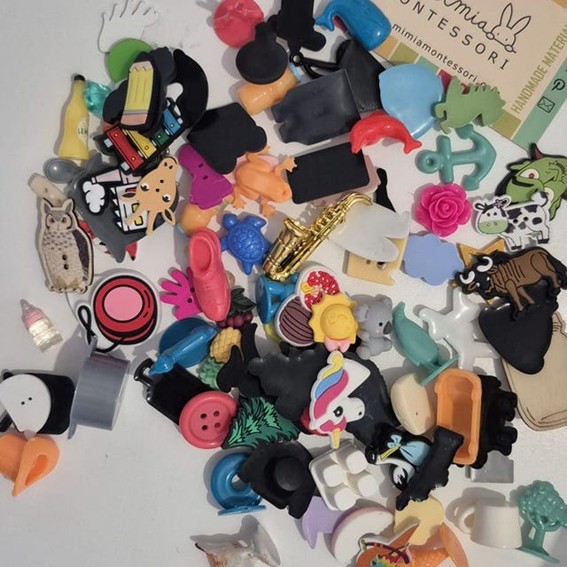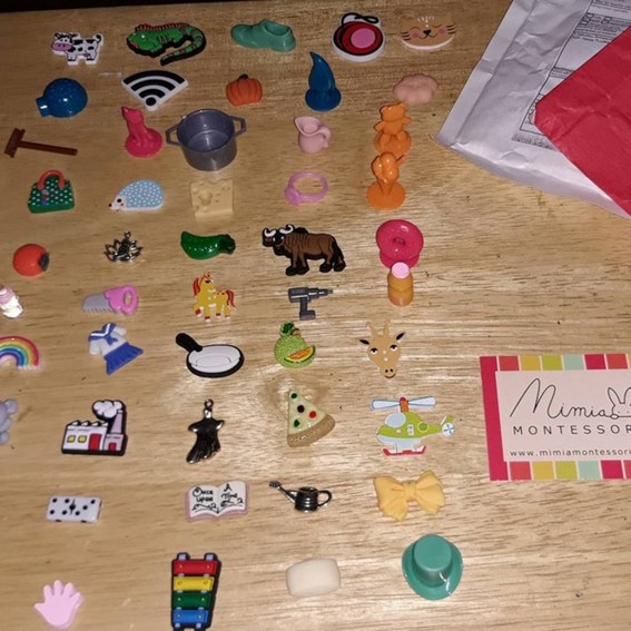 Muchos objetos tamaño ministro. Fantástico para hacer la caja de letras y sonidos Montessori.